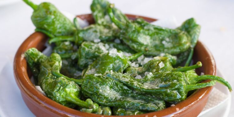 • 20 pimientos de padrón (these are the smallish green peppers you’ll see in most local supermarkets. Look for the freshest ones you can, firm with unwrinkled skin).