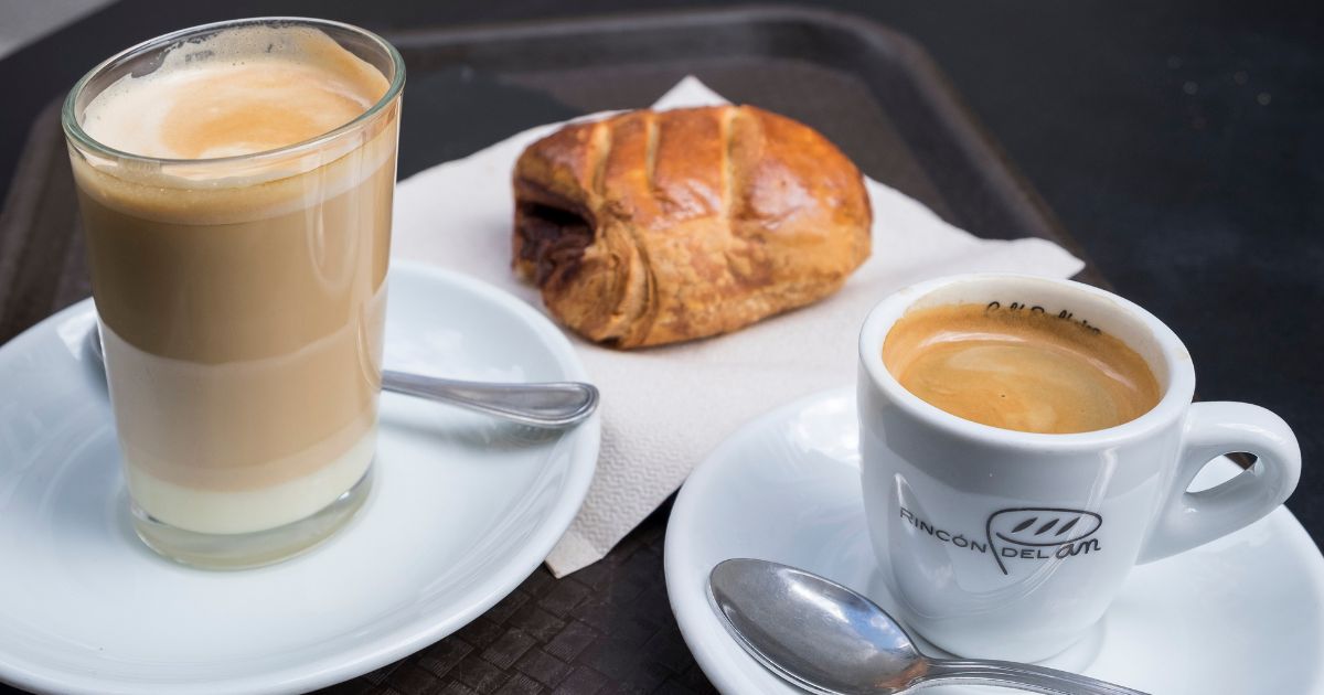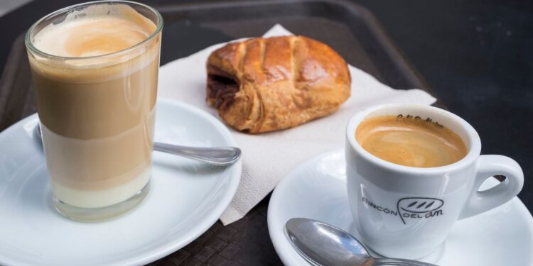 Cafe con leche; Darker than a caffu latte, this is a normal milky coffee that millions of Spaniards take with breakfast.