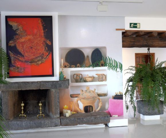 The living room is a low-roofed area with a fireplace surrounded by several shelves full of Canarian native pottery. Books, magazines, framed pictures and photos are everywhere, recalling moments from Manrique’s life, his artistic reading habits, his friendships and influences from artists such as the great Canarian painter, Nestor.