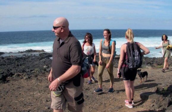 Tour guide David Penney takes us past calm lagoons, a fishing harbour, and wild, wave-battered shores to the impressive Montaña Bermeja.