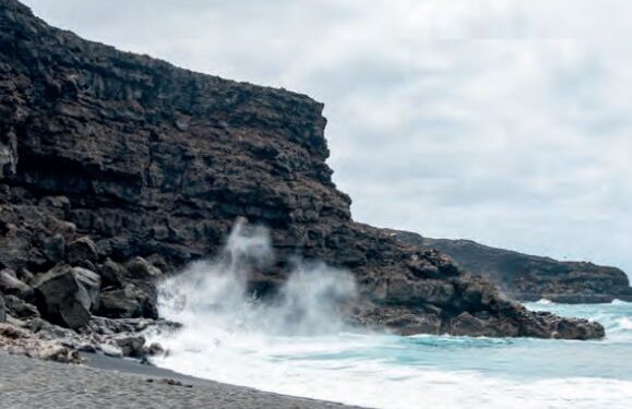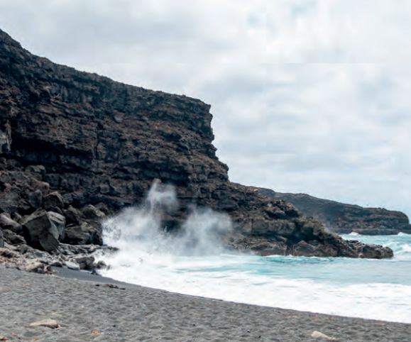 You’ll enter the National Park area once you’ve reached the highest clifftop (you’ll see the signs), and you’ll soon be able to see the beach ahead and below. Descend gradually over some increasingly rough terrain until you reach a dirt track. This is where you turn left and head down towards the sea until you end up on the remote black sand beach of El Paso.
