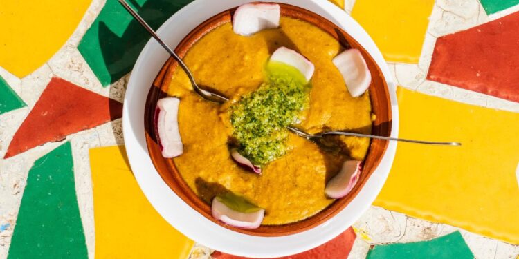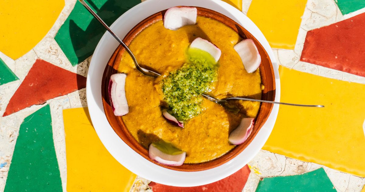 5. Serve the gofio escaldado with the onions on one side and eat it while it’s hot, using the onion to spoon it into your mouth.