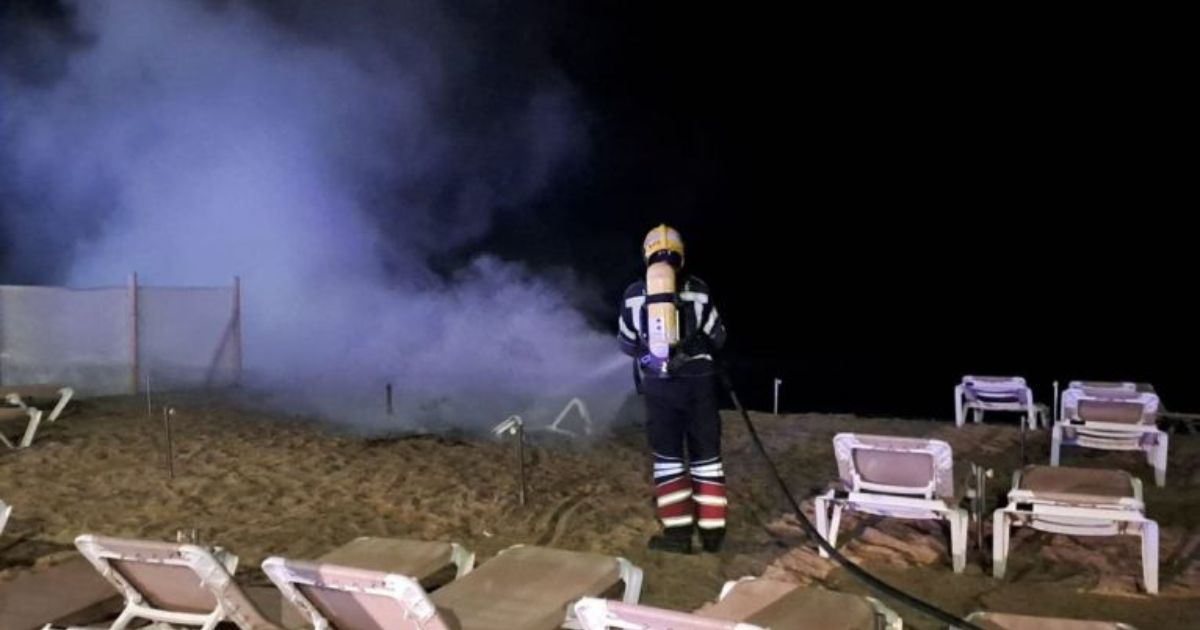 The first incident occurred at 11.17 pm and involved 12 sun beds. The fire was put out, but the equipment was destroyed.