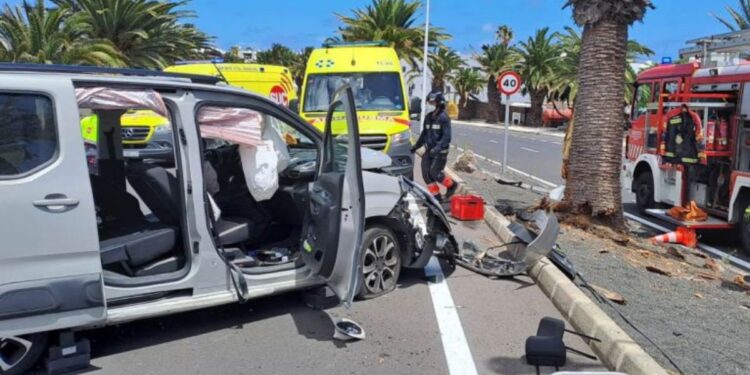 At approximately 1:45pm yesterday afternoon, the emergency services were called to the Avenida de las Palmeras in Costa Teguise after reports of a car crash.
