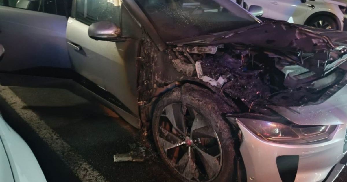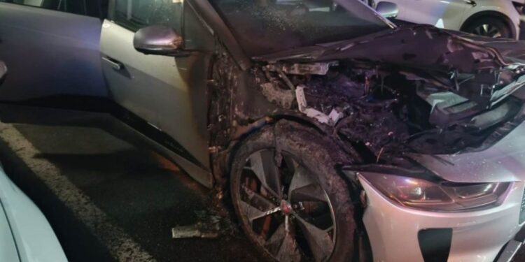 Upon arrival, fire fighters found an electric vehicle on fire. The source of the fire appeared to be close to one of the front tyres.