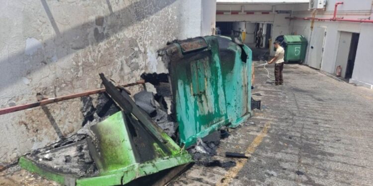 Yesterday afternoon, the emergency services were alerted to bins near a hotel in Playa Blanca that were on fire.